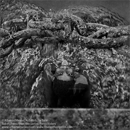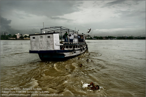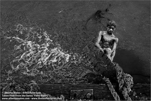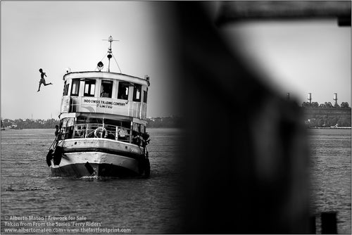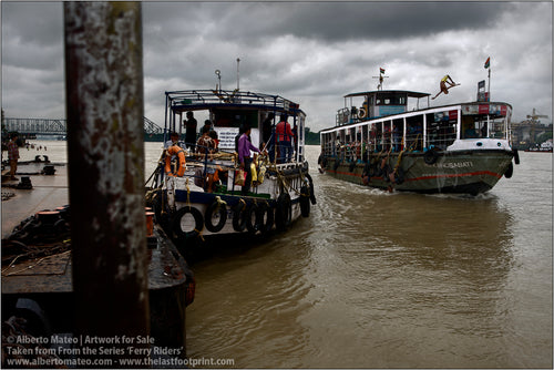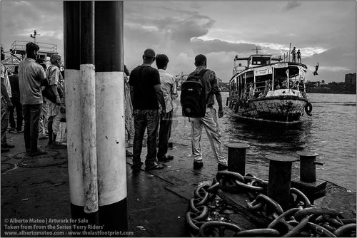 - TITLE: Ferry Riders climbing to ship deck, Kolkata, India. From the Series 'Ferry Riders'.